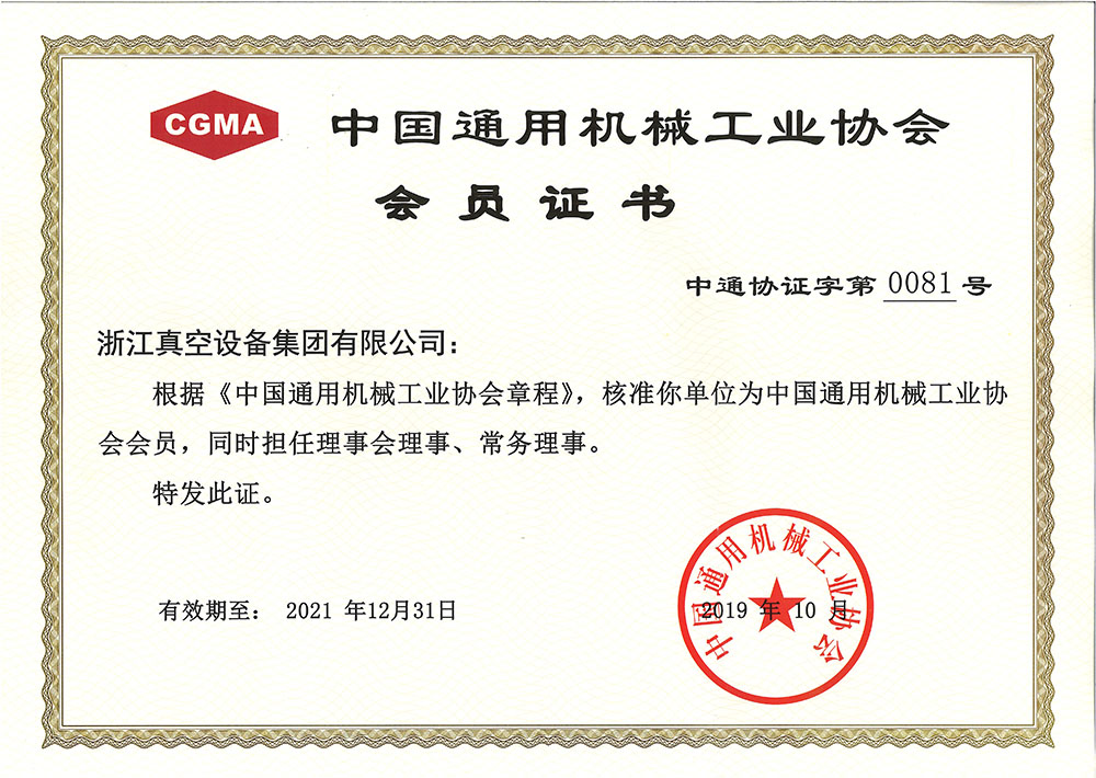 中國通用機(jī)械工業(yè)協(xié)會(huì)會(huì)員證書