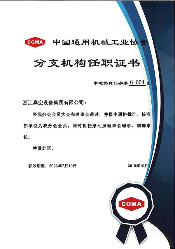 中國通用機(jī)械工業(yè)協(xié)會(huì)分支機(jī)構(gòu)任職證書